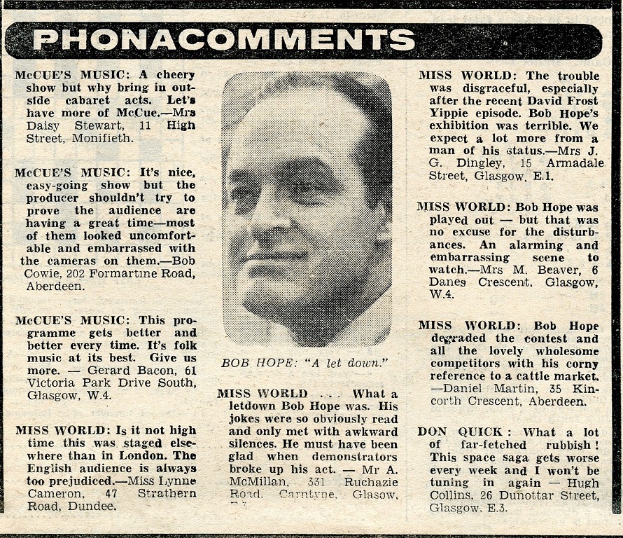 ‘McCue’s music was also the title of his first television series for Grampian Television. For BBC Tel